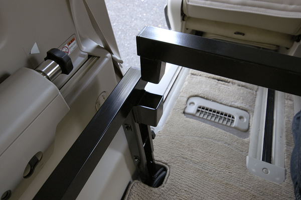 使わない時はフロントシートの背面などに収納できる様に、各パーツを極力真っ直ぐなパーツにしコンパクト化しました。