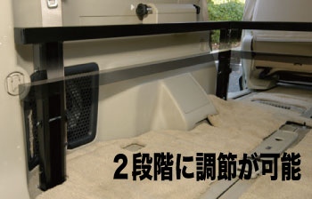 上段に設定した場合はセカンドシートの傾斜がキツくなるので足元にクッション等を置いてもらうと快適となります。