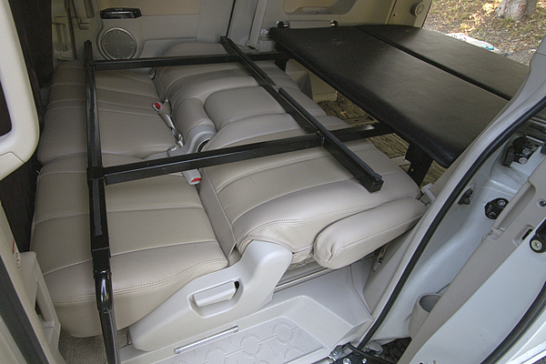 ▲ベッドキットのフレームを組んだ状態。ボディとフレームは固定していません。(ボルト固定すると要構造変更)