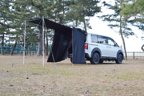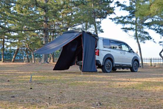 プライバシールーム 着替え等に使用できるプライバシールームを簡単に設営する事が出来ます。 海水浴~スノーボードまで着替えが必要なシーンで活躍すること間違いなしです! 基本的にはデリカ専用設計ですが汎用性も高くあらゆるリアゲート付車に適合します 裾部分にウエイトが仕込まれていて少々の風ではめくれ上がりません ルーフ箇所まで布でカバーしているのでプライバシーをしっかりと守ります。 コンパクトに収納可能
